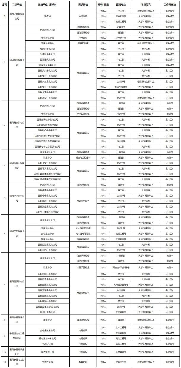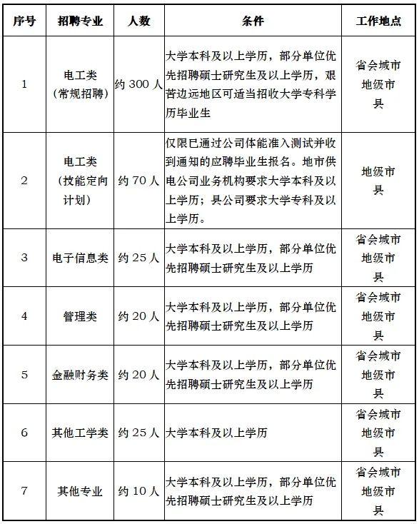 (二)招聘崗位:規(guī)劃、建設(shè)、運(yùn)?、運(yùn)維檢修、營(yíng)銷、信息通信、物資和培訓(xùn)教育等專業(yè)?線崗位。