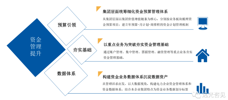 具體來說,建議從集團層面統(tǒng)籌細化資金預(yù)算管理體系,以預(yù)算為抓手逐步推動資金管理和資金業(yè)務(wù)數(shù)據(jù)顆粒度細化,在加強資金管控力度的同時為資金管理數(shù)字化轉(zhuǎn)型奠定管理基礎(chǔ)和數(shù)據(jù)基礎(chǔ)。