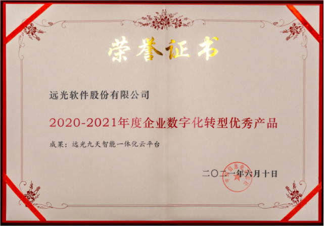 憑借強(qiáng)大的技術(shù)能力、協(xié)同創(chuàng)新能力和潛在應(yīng)用價(jià)值,遠(yuǎn)光九天平臺(tái)獲得了大會(huì)組委、活動(dòng)評(píng)審和眾多企業(yè)、客戶的一致認(rèn)可,獲選“2020-2021年度企業(yè)數(shù)字化轉(zhuǎn)型優(yōu)秀產(chǎn)品”。