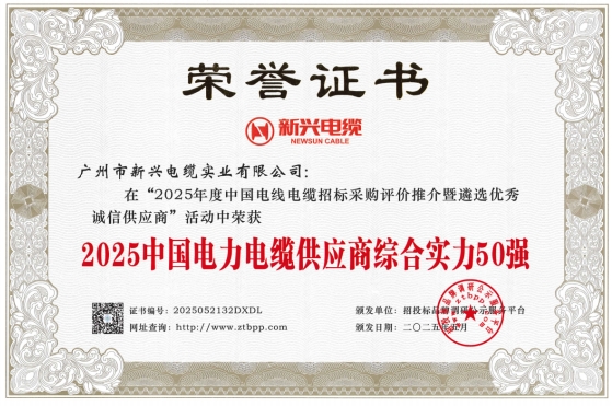 近日,在招投標(biāo)品牌調(diào)研公示服務(wù)平臺(tái)主辦的第四屆“2025年度中國(guó)電線電纜招標(biāo)采購(gòu)評(píng)價(jià)推介暨遴選優(yōu)秀誠(chéng)信供應(yīng)商活動(dòng)”中,新興電纜憑借卓越的產(chǎn)品質(zhì)量和技術(shù)實(shí)力,獲得五項(xiàng)行業(yè)重要認(rèn)可:"2025中國(guó)電力電纜供應(yīng)商綜合實(shí)力50強(qiáng)"、"2025中國(guó)民營(yíng)電線電纜企業(yè)10強(qiáng)"、"2025中國(guó)電線電纜招標(biāo)采購(gòu)十大推薦品牌"、"2025中國(guó)電力電纜十大品牌"和"2025中國(guó)電線電纜十大綠色品牌"。