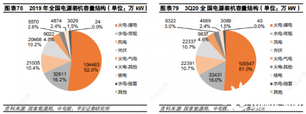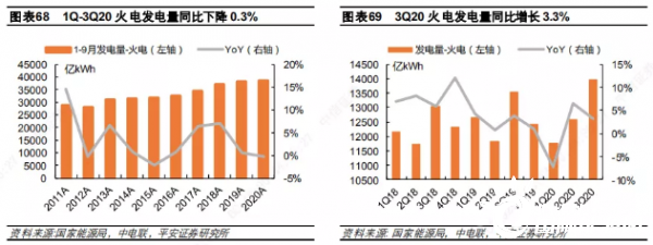 2019/2020 年冬季(2019 年 12 月及 2020 年1月、2月),全國平均氣溫較常年同期偏高1.1℃,是 1961年以來歷史同期第五高。暖冬疊加疫情,雖然有春節(jié)淡季因素存在,發(fā)、用電量仍下降超過5%,Q1火電發(fā)電量下降 8.2%,全行業(yè)上市公司營收下降 9.9%。隨著新冠疫情迅速得到有效控制,全社會用電需求顯著回暖,同時上半年水電出力不足,火電發(fā)電量在 Q2同比增長 6.5%。但 Q3水電大發(fā),火電同比增速回落至 3.3%。