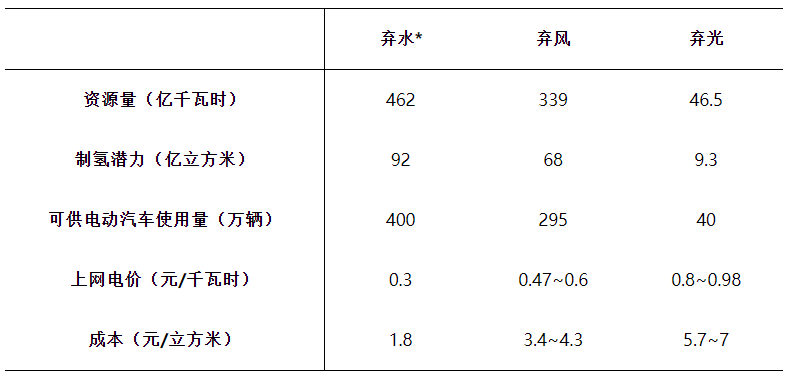 表1 利用棄水、棄風和棄光制氫潛力及成本