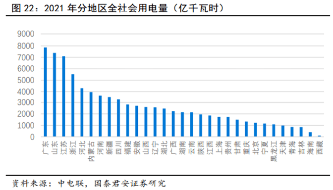 我們可以以廣東、江蘇、浙江三省第二產(chǎn)業(yè)的30%和第三產(chǎn)業(yè)的合計(jì)用電量,作為峰谷電價(jià)差套利的儲(chǔ)能市場(chǎng)規(guī)模。
