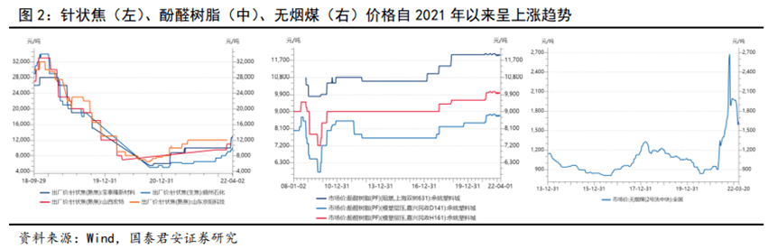 原料價格:過去優(yōu)質(zhì)負極材料主要采用進口原料(主要指進口針狀焦),2019-2020年原料國產(chǎn)化替代加速,產(chǎn)品成本顯著下降。2021年以來,國內(nèi)負極材料主要原料的價格呈現(xiàn)上漲趨勢。下游需求持續(xù)增長,供需博弈下原料價格的上漲已成定局,負極材料廠商成本承壓,而壓力能否傳導至下游電池廠商,取決企業(yè)基于技術(shù)壁壘和客戶資源所構(gòu)筑的議價能力。