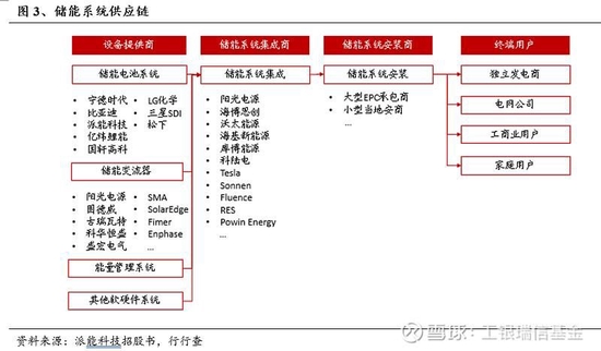 儲能產(chǎn)業(yè)鏈在電力體系中十分重要,諸多環(huán)節(jié)之間存在交集。儲能產(chǎn)業(yè)鏈上游主要包括電池原材料及生產(chǎn)設(shè)備供應(yīng)商等;中游主要為電池、電池管理系統(tǒng)、能量管理系統(tǒng)以及儲能變流器供應(yīng)商;下游主要為儲能系統(tǒng)集成商、安裝商以及終端用戶等。產(chǎn)業(yè)鏈涉及的環(huán)節(jié)眾多,從電池制造到EPC施工,再到各種場景下運營,電池制造環(huán)節(jié)與動力電池企業(yè)存在交集,EPC施工環(huán)節(jié)與光伏、風電施工企業(yè)存在交集,運營商和電網(wǎng)企業(yè)存在交集。