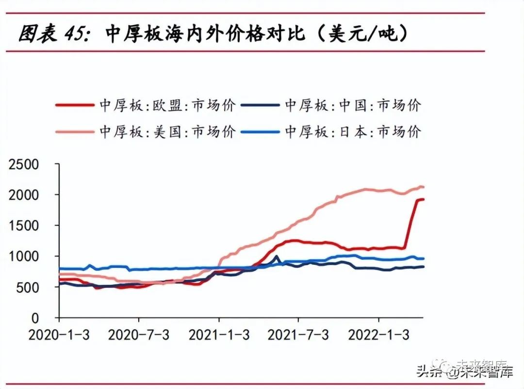 樁基無反傾銷稅限制,歐洲企業(yè)競爭力有限。現(xiàn)階段樁基無反傾銷稅限制,參考 塔筒反傾銷稅的調(diào)查周期(約 10 年),未來 10 年有望成為樁基環(huán)節(jié)的出口黃金期。競爭對手方面,歐洲本土供應(yīng)商的產(chǎn)能落后,歐洲本土樁基供應(yīng)商產(chǎn)能有限,SIF、 EEW等四家主流供應(yīng)商的年設(shè)計產(chǎn)能之和不足 600 根,且50%的產(chǎn)品直徑小于11米, 在歐洲風(fēng)機大型化趨勢下,已難滿足大噸重以及大直徑的產(chǎn)品要求。塔筒出口受反傾銷稅影響。較低的反傾銷稅率能使國內(nèi)塔筒企業(yè)在海外市場中擁 有更強的議價能力?,F(xiàn)階段,大金重工在歐盟地區(qū)的反傾銷稅最低為 7.2%,泰勝風(fēng)能 在澳洲地區(qū)的反傾銷稅為零,出口優(yōu)勢明顯。原材料價低造就競爭力。原材料價格方面,塔筒原材料主要有中厚板、法蘭等, 中厚板占原材料成本的占在 80%以上, 2022 年俄烏沖突,歐洲中厚板價格一度是我 國中厚板價格的兩倍,我國中厚板市場價長期低于國際市場,促使我國塔筒企業(yè)利潤 率高于海外企業(yè)。