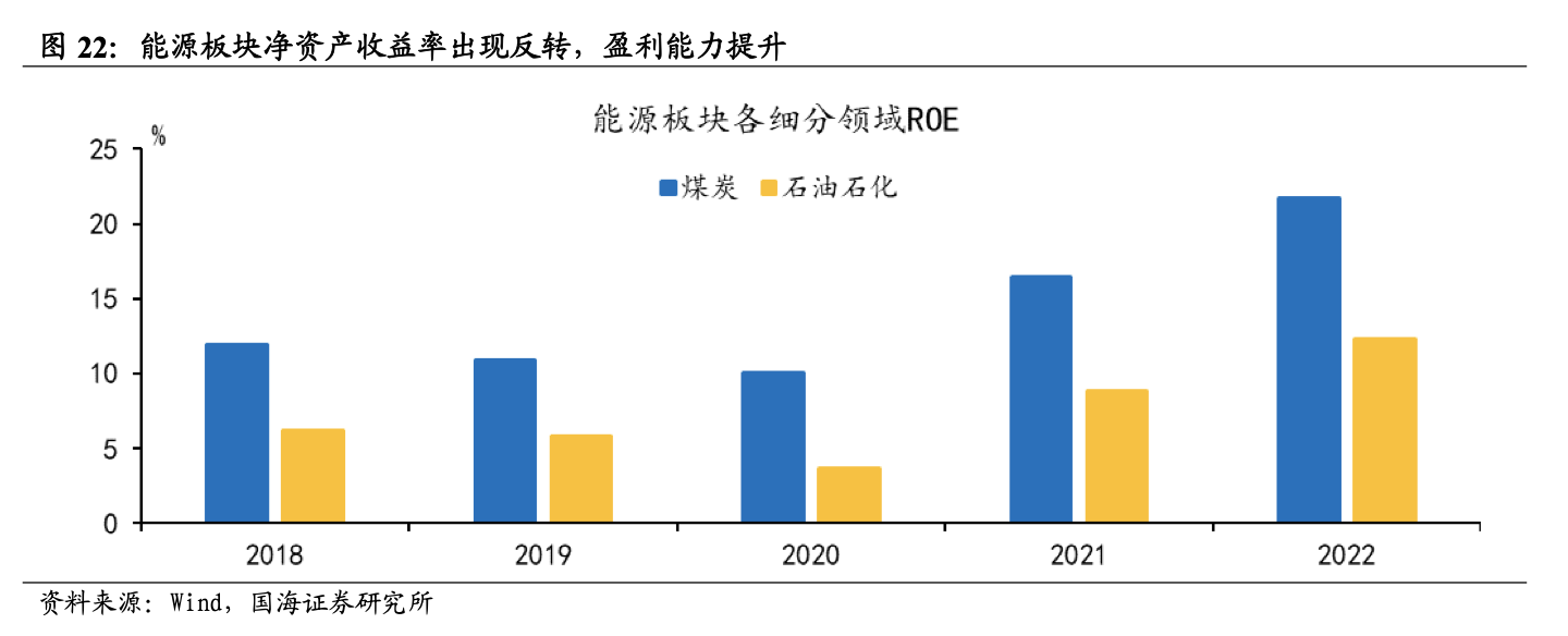 國海證券6月8日研報表示,能源板塊中上市公司擁有較為優(yōu)質(zhì)的基本面和偏低的市場估值,處于優(yōu)質(zhì)資產(chǎn)被低估的狀態(tài)。根據(jù)國海證券6月8日研報測算,截止到5月24日,石油石化、煤炭、公用事業(yè)2022年全年的ROE分別為12.32%、21.74%、5.59%,盈利能力較強,且PB十年分位分別為 8.3%、35.9%、37.8%,能源是優(yōu)質(zhì)資產(chǎn)被低估的主要領(lǐng)域,調(diào)整過后仍具備性價比。