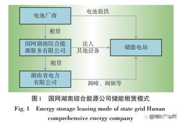 在工商業(yè)用戶市場,美國的AMS公司向用戶提供儲能租賃服務(wù)以幫助用戶節(jié)省電費(fèi)支出。針對新能源消納空間不足以及新能源發(fā)電企業(yè)自配儲能困難的問題,國網(wǎng)湖南綜合能源公司于2020年11月發(fā)布儲能設(shè)備租賃招標(biāo)公告,首創(chuàng)電池租賃模式,該運(yùn)營模式如圖1所示。
