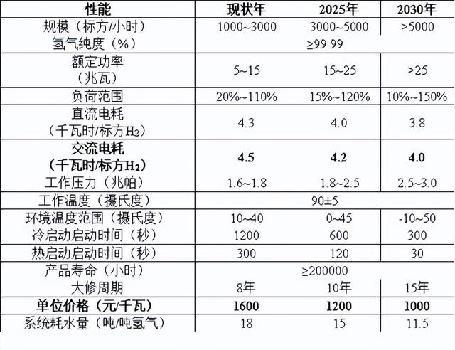 PEM電解槽技術(shù)參數(shù)及展望