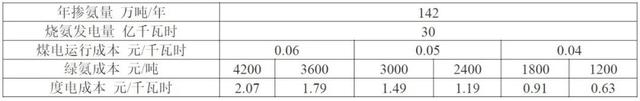 假設(shè)實(shí)現(xiàn)約50%的摻氨比例,經(jīng)計(jì)算每年需氨量約1000萬噸,制氨用電量約900億千瓦時(shí)。則制氨所需風(fēng)電裝機(jī)約1500萬千瓦、光伏裝機(jī)約2900萬千瓦、制氫+合成氨裝置約2250萬千瓦,建設(shè)管道5條,預(yù)計(jì)設(shè)備總投資為2650億元。經(jīng)測算火電摻燒氨帶來的全社會(huì)用電成本上升約0.031元/千瓦時(shí)。