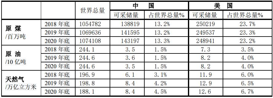 中美兩國化石燃料可采儲(chǔ)量的比較