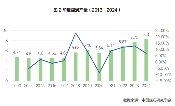 就石油、天然氣和煤炭化石能源稟賦而言,印尼油氣算不上富足,但煤炭資源豐富。印尼曾經(jīng)為OPEC成員國,但在2003年成為石油凈進口國,并于2008年退出該組織。雖然印尼天然氣儲量排名東盟各國前列,但預(yù)計在2030年會變成天然氣凈進口國。印尼煤炭儲量豐富,世界排名第六,儲采比為62。印尼是排名世界前列的煤炭生產(chǎn)和出口大國。根據(jù)印尼能源和礦產(chǎn)部相關(guān)數(shù)據(jù)統(tǒng)計,2024年全年印尼煤炭產(chǎn)量已經(jīng)達到8.3億噸、出口4.3億噸。
