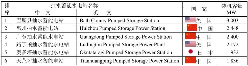 世界上第一座抽水蓄能電站是瑞士于1879年建成的勒頓抽水蓄能電站。當(dāng)今世界上最大的抽水蓄能電站是美國巴斯康蒂抽水蓄能電站,裝機(jī)容量達(dá)3003MW,其次為中國惠州抽水蓄能電站,裝機(jī)容量為2448 MW,廣東抽水蓄能水電站(Guangdong Pumped Storage Power Station),裝機(jī)容量為2400MW。