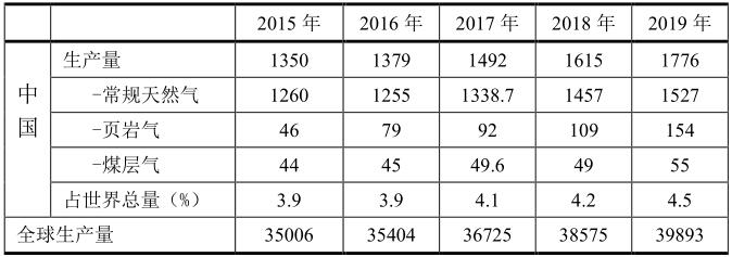 中國(guó)天然氣生產(chǎn)以常規(guī)天然氣為主,并有少量非常規(guī)天然氣如頁巖氣和煤層氣。
