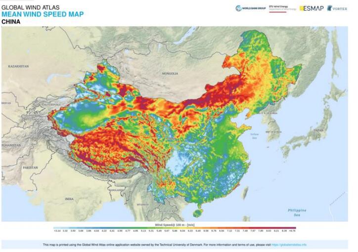 中國平均風速見圖