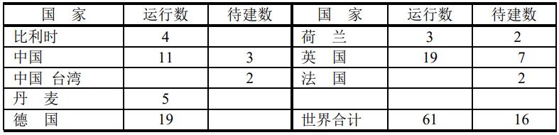 目前全球裝機容量大于200 MW的海上風電場有61個風電場在運行,待建的海上風電場有16座。目前海上風電場主要在西歐國家,如德國和英國。