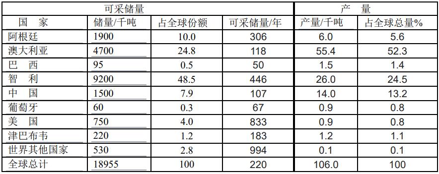 2021年底世界各國(guó)鋰的可采儲(chǔ)量和產(chǎn)量