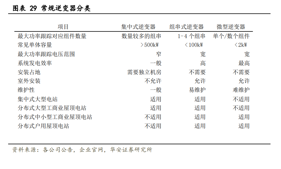 組串 PCS 彌補集中式不足,開啟規(guī)?;瘧?yīng)用。業(yè)內(nèi)目前電池儲能系統(tǒng)主要采取集中 式 PCS,多組電池并聯(lián)將引起電池簇之間的不均衡,久之并聯(lián)電池簇中會出現(xiàn)一部分電 池實際出力不足,而另一部分超出倍率使用的現(xiàn)象,造成“木桶”效應(yīng);而組串式 PCS 可 以實現(xiàn)簇級管理,提升系統(tǒng)壽命,提高全壽命周期放電容量,規(guī)?;瘧?yīng)用趨勢已見雛形。 當前市場以組串式逆變器為主,微型逆變器尚處于發(fā)展階段。綜合考慮逆變器的不同技 術(shù)并結(jié)合其市場策略做出選擇的背景下,當前組串式逆變器仍是市場較為主流選擇。目 前,華為、陽光電源、固德威、錦浪科技等光伏逆變器的核心供應(yīng)商均在組串式逆變器 有布局。而微型逆變器作為一種新的技術(shù)路線尚處于發(fā)展期,技術(shù)門檻較高,供應(yīng)商較 少。國外的微型逆變器市場發(fā)展較早,但出貨仍集中于海外龍頭 Enphase。我國微型逆變 器供應(yīng)商較少,一方面是因為國內(nèi)相關(guān)技術(shù)研發(fā)較晚,另一方面是因為國內(nèi)市場對于微 型逆變器的需求處于導(dǎo)入階段,尚未進入放量階段。