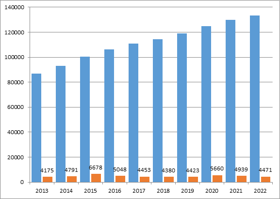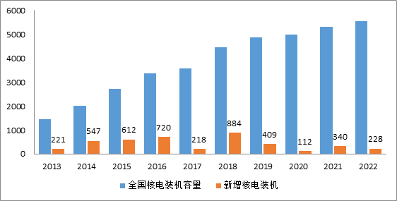圖10 2013—2022年核電裝機和新增裝機情況(單位:萬千瓦)