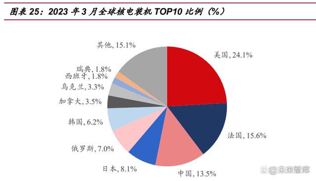 當(dāng)前全球都處在能源轉(zhuǎn)型的重要時(shí)期,核電作為清潔基荷能源的屬性得到重視。 美國(guó)、法國(guó)、日本、俄羅斯等曾經(jīng)在歷史上暫緩核電建設(shè)甚至退核的國(guó)家,均開(kāi)始重 啟核電建設(shè),并制定實(shí)施一系列關(guān)于核能發(fā)展的戰(zhàn)略、措施和行動(dòng),紛紛提出更加積 極的發(fā)展目標(biāo)。 目前全球核電裝機(jī) 393GW,規(guī)模排名前五的國(guó)家分別為美國(guó)(95GW)、法國(guó) (61GW)、中國(guó)(57GW)、日本(32GW)、俄羅斯(28GW),德國(guó)(4GW)作為 曾經(jīng)的核電大國(guó)目前正處于全面退核狀態(tài),印度(7GW)隨著國(guó)際貿(mào)易環(huán)境改善占比 有望逐漸提高。