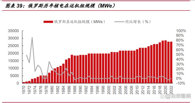 俄羅斯核電發(fā)電占比逐年穩(wěn)定攀升,目前是俄羅斯發(fā)電結(jié)構(gòu)中占比最高的清潔 能源。1986 年切爾諾貝利核電站事故后,俄羅斯核電發(fā)展趨緩,蘇聯(lián)解體后核電相 關(guān)資金短缺,直到 1990 年代開(kāi)始向中國(guó)、伊朗、印度等國(guó)出口反應(yīng)堆,資金緊張情 況得到緩解,俄羅斯核電產(chǎn)業(yè)重新回到穩(wěn)定發(fā)展軌道。核電發(fā)電量占比由 1990 年的 11%,提升至 2020 年 20%。 2022 年 2 月,俄羅斯政府宣布將為新核能發(fā)展計(jì)劃撥款約 1000 億盧布(約 13 億美元),用以建造小型核電廠、建立閉式燃料循環(huán)技術(shù)平臺(tái)、研發(fā)新型核燃料等。 同年 8 月,俄羅斯國(guó)家原子能公司 Rosatom 宣布計(jì)劃設(shè)計(jì)并建設(shè)一種新型高溫堆, 主要目的在于擴(kuò)大制氫規(guī)模,計(jì)劃在 2030 年左右建成。