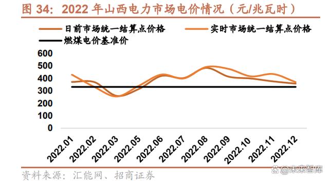 乘市場化改革春風(fēng),各地區(qū)電力市場交易價格 2022 年均大幅上浮。年度電力交易方面,2023 年山西省雙邊協(xié)商與 集中競價電力直接交易成交均價分別為 393.72 元/兆瓦時與 385.74 元/兆瓦時,比去年同期增長 0.01%與 7.43%;廣 東省年度雙邊協(xié)商交易與掛牌交易價格分別為 553.88 元/兆瓦時與 552.28 元/兆瓦時,比去年同期增長了 11.44%與 9.97%。月度價格方面,2022 年山西、廣東電力交易市場的日前市場結(jié)算價格與實時市場統(tǒng)一結(jié)算價格均有所增長, 且在年末均顯著高于當(dāng)?shù)厝济弘妰r基準價。2022 年 9 月,廣東省日前市場結(jié)算價格與實時市場統(tǒng)一結(jié)算價格一度攀 升到 743.06 元/兆瓦時與 817.27 元/兆瓦時,相較年初增長 70%。