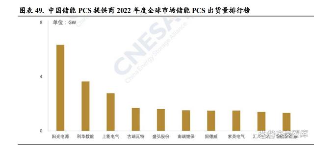 當(dāng)前儲(chǔ)能 PCS 生產(chǎn)廠商眾多,與光伏逆變器廠商高度重合。儲(chǔ)能變流器與光伏逆變器的最主要 作用都是實(shí)現(xiàn)交直流的轉(zhuǎn)換,所以兩種產(chǎn)品的主要零部件類似,且在應(yīng)用端也開(kāi)始呈現(xiàn)高度的協(xié) 同效應(yīng)。在光伏 PCS 已經(jīng)取得非常大的市場(chǎng)規(guī)模的前提下,未來(lái)儲(chǔ)能 PCS 的競(jìng)爭(zhēng)格局與光伏逆 變器趨同,延續(xù)光伏 PCS 格局。當(dāng)前儲(chǔ)能 PCS 行業(yè)賽道參與者眾多,來(lái)自光伏逆變器、不間斷 電源(UPS)、充電樁(EV charger)、電網(wǎng)側(cè)-輸配電設(shè)備(PTD、MVD、APF、SVG)等多領(lǐng) 域廠商。據(jù) CNESA 數(shù)據(jù),2022 年度全球市場(chǎng)中儲(chǔ)能 PCS 出貨量排名前十位的中國(guó)儲(chǔ)能 PCS 提 供商,依次為陽(yáng)光電源、科華數(shù)能、上能電氣、古瑞瓦特、盛弘股份、南瑞繼保、固德威、索英 電氣、匯川技術(shù)和首航新能源。