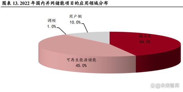 我國(guó)作為世界第一大儲(chǔ)能市場(chǎng),應(yīng)用場(chǎng)景主要集中在發(fā)電側(cè)和電網(wǎng)側(cè)。從 2022 年已并網(wǎng)項(xiàng)目的應(yīng)用 領(lǐng)域來(lái)看,可再生能源儲(chǔ)能項(xiàng)目和獨(dú)立式儲(chǔ)能項(xiàng)目貢獻(xiàn)了絕大多數(shù)增量,分別占比達(dá) 45%和 44%, 用戶側(cè)儲(chǔ)能項(xiàng)目?jī)H占比 10%,但其中還包括 3 個(gè) 10 小時(shí)鉛炭?jī)?chǔ)能項(xiàng)目。