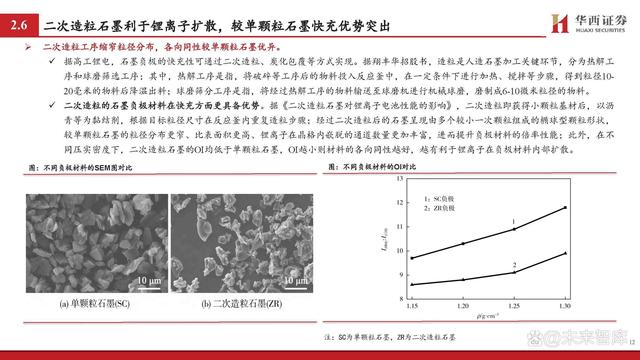 包覆材料通常為無(wú)定形碳,可改善鋰離子擴(kuò)散性能。 除二次造粒外,包覆工序也可提升石墨材料快充性能。據(jù)翔豐華招股書,包覆碳化是指以石墨類碳材料作為“核芯”,在其表面包覆一 層均勻的無(wú)定形碳材料,形成類似“核-殼”結(jié)構(gòu)的顆粒;通常用的無(wú)定形碳材料的前軀體有酚醛樹脂、瀝青、檸檬酸等低溫?zé)峤馓疾?料,由于無(wú)定形碳材料的層間距比石墨大,因此可改善鋰離子在其中的擴(kuò)散性能,從而提高石墨材料的大電流充放電性能。 此外,為了避免瀝青等材料在碳化過程中可能出現(xiàn)的各向異性并進(jìn)而影響倍率性能的問題,現(xiàn)有專利提出通過改性劑(酚醛樹脂、殼聚 糖、聚酰亞胺、聚酰胺或PET等)對(duì)基底材料(瀝青)進(jìn)行改性(高溫?cái)嚢杌旌系?,而后對(duì)石墨進(jìn)行包覆,此后在熱處理過程中便可 構(gòu)筑具有各向同性的碳包覆層結(jié)構(gòu),從而進(jìn)一步提升材料的快充性能。