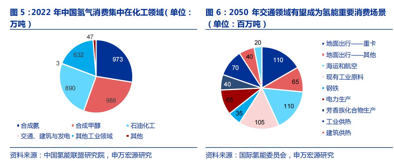 1)氫氣作為清潔能源,在碳中和愿景下需求較大:根據(jù)中國氫能聯(lián)盟研究院,預(yù)計(jì)到2050 年全球氫氣需求量將達(dá)到6.6 億噸,其中中國約為1.95 億噸(2022 年僅0.35 億噸)。