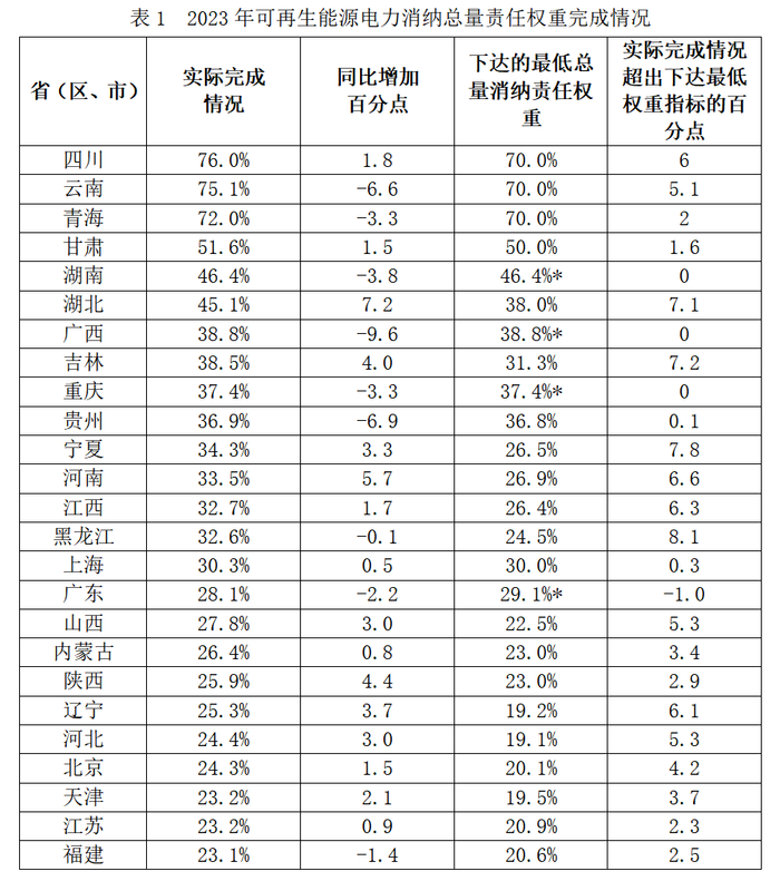 二、各省(區(qū)、市)可再生能源電力消納責任權重完成情況
