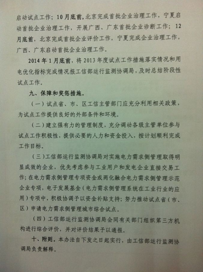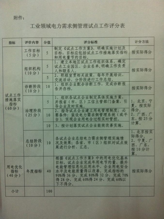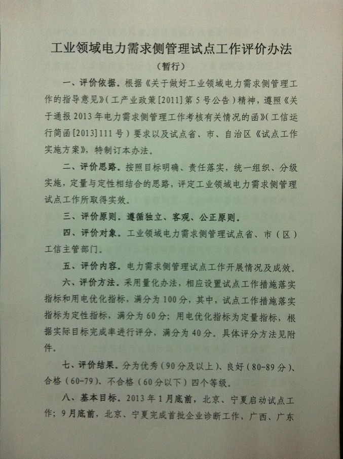 工業(yè)領(lǐng)域電力需求側(cè)管理試點(diǎn)工作評(píng)價(jià)辦法(暫行)