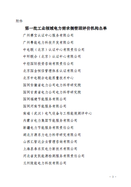 關(guān)于公布第一批工業(yè)領(lǐng)域電力需求側(cè)管理評價機構(gòu)的通知