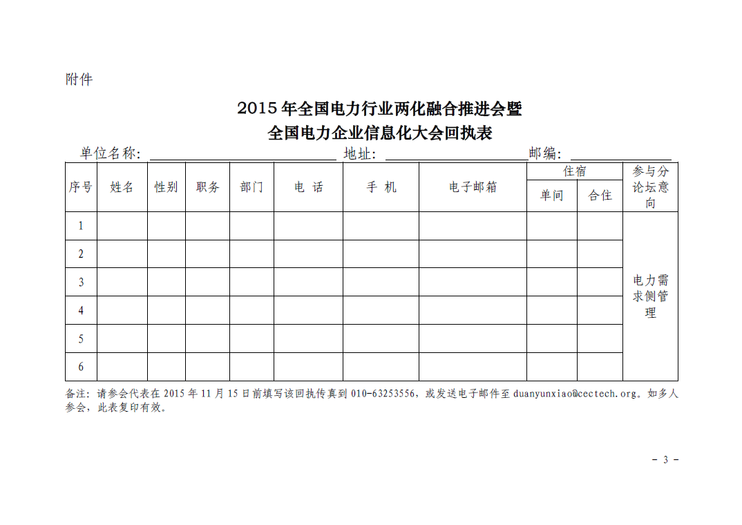 2.關(guān)于組織參加2015年全國電力企業(yè)信息化大會電力需求側(cè)管理分論壇的通知(工電促[2015]10號)